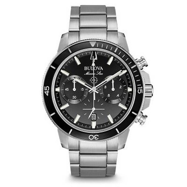 Midsize gunmetal gray Bulova with stainless steel markers and gray bracelet band with deployment buckle.